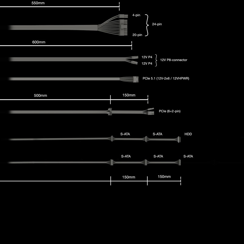 | Μήκος καλωδίων SATA | 500, 650, 800 mm |