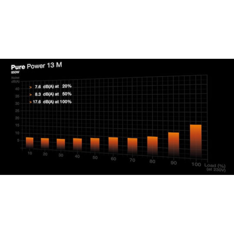 Το Pure Power 13 M έχει πιστοποίηση 80 PLUS Gold με εξαιρετική απόδοση. Αποτέλεσμα, χαμηλότερη κατανάλωση ενέργειας, χαμηλότερο κόστος και πάνω απ' όλα πιο δροσερή και αθόρυβη λειτουργία. Το Pure Power 13 M είναι πάντα η σωστή επιλογή για αθόρυβα συστήματα και υπολογιστές gaming!