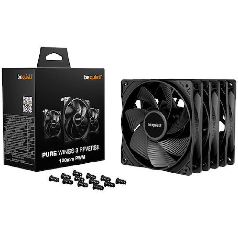 Το be quiet! Pure Wings 3 120 mm PWM Reverse White 3-Pack είναι ένα σετ τριών ανεμιστήρων για υπολογιστές (120 mm) με PWM έλεγχο στροφών, αντεστραμμένες λεπίδες για βελτιωμένη ροή αέρα και τεχνολογία rifle bearing για μεγάλη διάρκεια ζωής (~80 000 ώρες). Προσφέρουν καλή ροή αέρα με χαμηλό θόρυβο (~28,5 dB) και είναι ιδανικοί για εισαγωγή αέρα από πλευρικά ή κάτω σημεία του κουτιού.