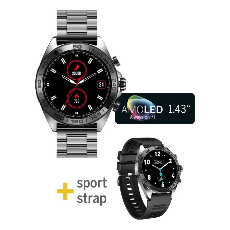 Τα προϊόντα που δεν αναγράφουν διαθέσιμο σημαίνει ότι δεν υπάρχουν άμεσα διαθέσιμα στο κατάστημα και θα παραληφθούν το αργότερο εντός των εργάσιμων ημερών που αναγράφεται στη διαθεσιμότητα. Σε κάθε περίπτωση η ημερομηνία μπορεί να μεταβληθεί και θα υπάρχει σχετική ενημέρωσή σας.Αυτό το smartwatch διαθέτει κομψό στρογγυλό σχεδιασμό με κάσα και λουράκι σε μαύρο μεταλλικό χρώμα, κατασκευασμένα από μέταλλο και καουτσούκ. Η οθόνη του είναι τεχνολογίας AMOLED με διαγώνιο 3.63 cm (1,43 ίντσες), προσφέροντας ζωντανά και έντονα χρώματα, ιδανική για χρήση ακόμα και σε dark mode. Είναι εξοπλισμένο με ενσωματωμένο μικρόφωνο και ηχείο, ενώ υποστηρίζει Bluetooth 5.3 για εύκολη σύνδεση με συσκευές Android. Με αντοχή στο νερό βαθμολογημένη στα 5 ATM, είναι κατάλληλο για κολύμβηση και καθημερινή χρήση. Επιπλέον, διαθέτει αισθητήρες για μέτρηση καρδιακού ρυθμού, αρτηριακής πίεσης και οξυγόνου στο αίμα, καθώς και βηματόμετρο και καταγραφή καμένων θερμίδων. Υποστηρίζει εμφάνιση καιρού, ειδοποιήσεις SMS, ξυπνητήρι και έλεγχο μουσικής, καθιστώντας το ιδανικό για αθλητικές δραστηριότητες και καθημερινή χρήση.