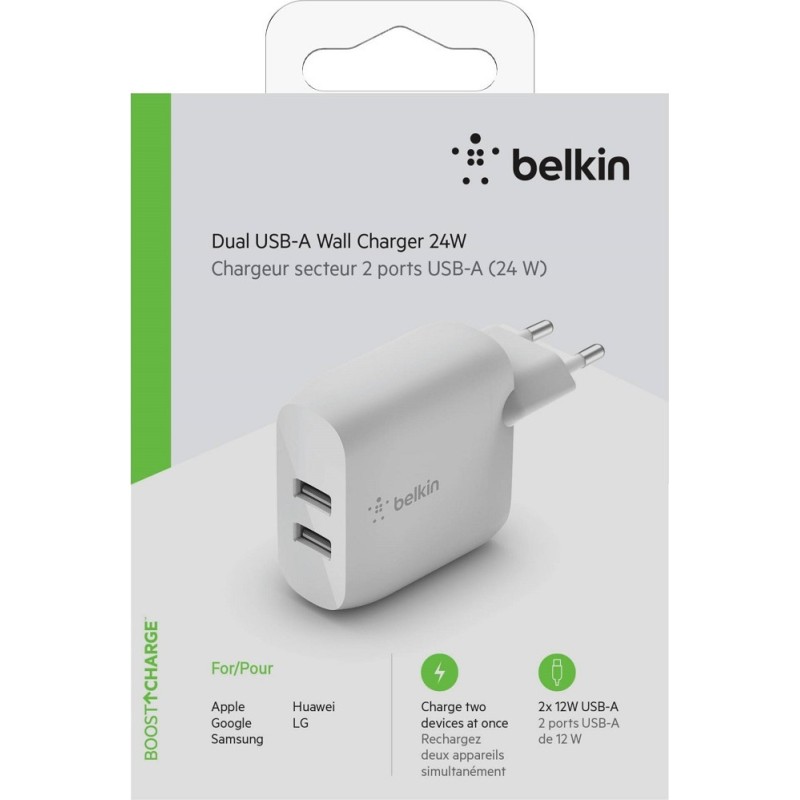 Belkin 2x USB Wall Charger Λευκό (Boost Charge 24W) (WCB002VFWH)