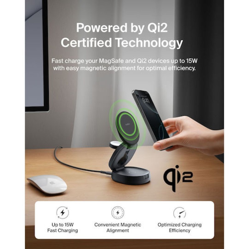Belkin Ασύρματος Φορτιστής Qi2 15W Μαύρος (Boost Charge) (WIZ034KQBK)