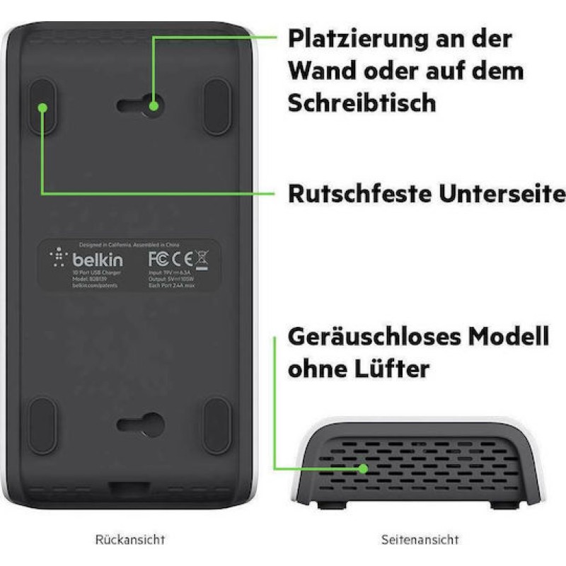 Ο σταθμός φόρτισης ανιχνεύει αυτόματα τη συνδεδεμένη συσκευή για να παρέχει ακριβώς το σωστό ρεύμα φόρτισης έως και 2,4A για βέλτιστη φόρτιση. Η ενσωματωμένη προστασία υπερτάσεων προστατεύει επίσης τη συσκευή σας από υπερβολική τάση.