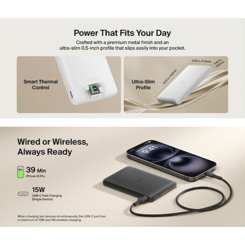 Τα προϊόντα που δεν αναγράφουν διαθέσιμο σημαίνει ότι δεν υπάρχουν άμεσα διαθέσιμα στο κατάστημα και θα παραληφθούν το αργότερο εντός των εργάσιμων ημερών που αναγράφεται στη διαθεσιμότητα. Σε κάθε περίπτωση η ημερομηνία μπορεί να μεταβληθεί και θα υπάρχει σχετική ενημέρωσή σας.Αυτό το power bank προσφέρει μια αξιόπιστη και κομψή λύση για την τροφοδοσία των συσκευών σας εν κινήσει. Με χωρητικότητα 5000mAh, μπορείτε να το χρησιμοποιήσετε για να επαναφορτίσετε το κινητό σας πολλές φορές, εξασφαλίζοντας ότι θα παραμείνει ενεργό καθ' όλη τη διάρκεια της ημέρας.