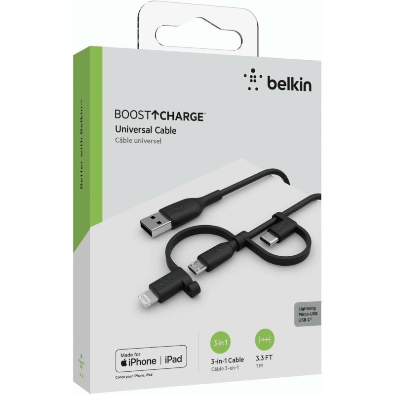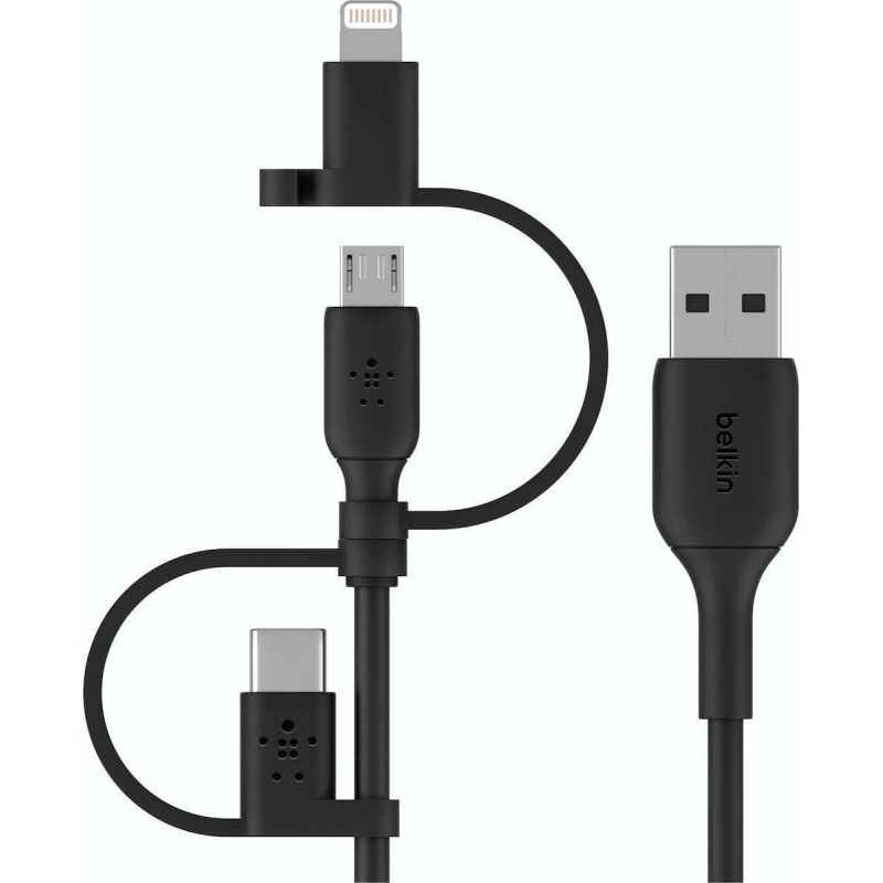 Belkin Regular USB to Lightning / Type-C / micro USB Cable Μαύρο 1m (CAC001BT1MBK) (CAC001BT1MBK)
