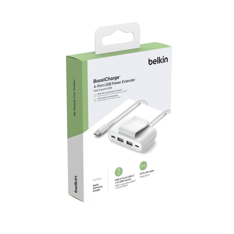 Belkin USB 2.0 Hub 4 Θυρών με σύνδεση USB-C Λευκό (BUZ001BT2MWHB7)