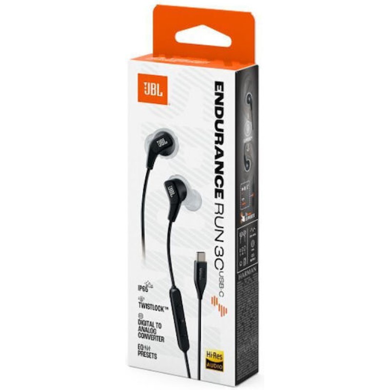 JBL Endurance RUN 3 In-ear Sport Headphones USB-C Μαύρα (JBLENDURRUN3CBLKG)