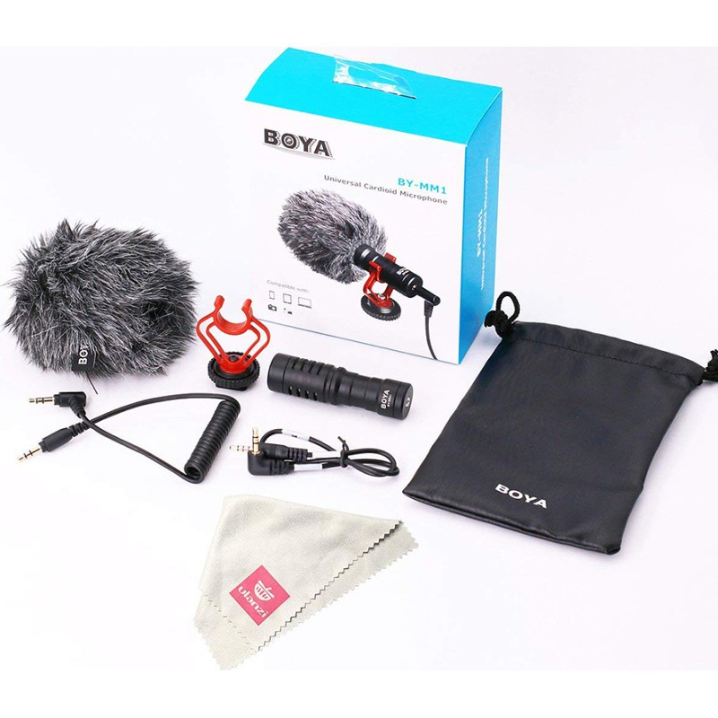 Το BOYA BY-MM1 είναι ένα καρδιοειδές μικρόφωνο, το οποίο σχεδιάζεται ειδικά για τη βελτίωση της ποιότητας ήχου των βίντεο με βάση ενσωματωμένα μικρόφωνα. Με καλώδιο TRS και καλώδιο εξόδου TRRS που περιλαμβάνεται, μπορεί να χρησιμοποιηθεί σε smartphones, κάμερες, βιντεοκάμερες, συσκευές εγγραφής ήχου, υπολογιστές και άλλες συσκευές εγγραφής ήχου / εικόνας. Το BOYA BY-MM1 είναι ένα συμπαγές σε μέγεθος και ελαφρύ χάρη στην κατασκευή του σώματος του από αλουμινίου μικρόφωνο και καθώς δεν προσθέτει ιδιαίτερο βάρος στον εξοπλισμό, μπορεί εύκολα να χρησιμοποιηθεί κατά τη διάρκεια των μεγάλων χρονικά γυρισμάτων. Χάρη στη σχεδίαση Plug and Play, δε χρειάζεται να χρειάζεται να ανησυχείτε για την κατάσταση της μπαταρίας. Η παρεχόμενη αντικραδασμική βάση μειώνει αποτελεσματικά τους ανεπιθύμητους κραδασμούς και τους ήχους από το καλώδιο και το θόρυβο χειρισμού.