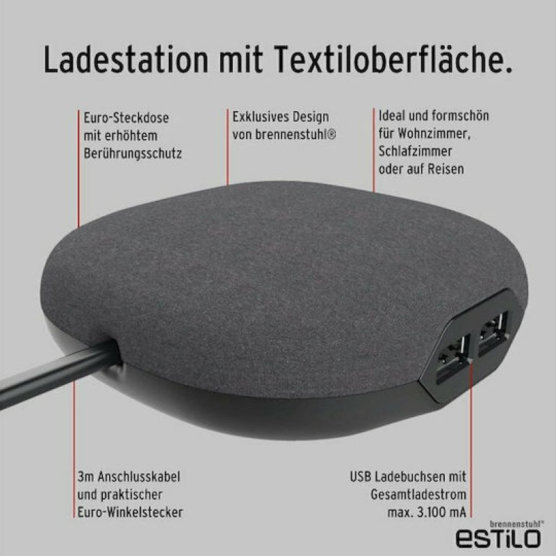 Brennenstuhl Βάση Φόρτισης με 2 Θύρες USB-A σε Γκρι χρώμα (1150020010) (1150020010)