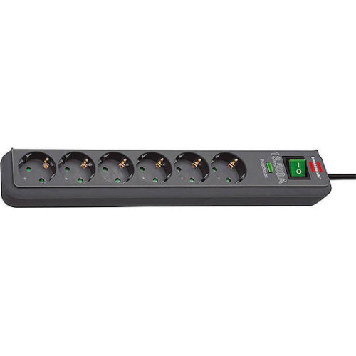 Brennenstuhl Eco-Line 6 Πολύπριζο Aσφαλείας 6 Θέσεων με USB-A, Διακόπτη και Καλώδιο 5m