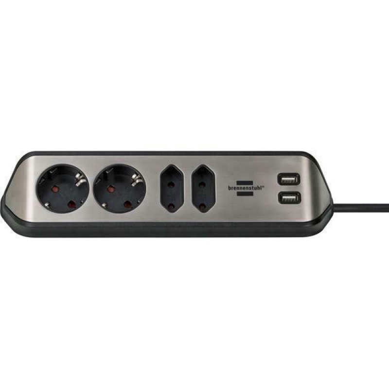 Brennenstuhl Estilo Πολύπριζο 4 Θέσεων με 2 USB-A και Καλώδιο 2m Ασημί (1153590410)