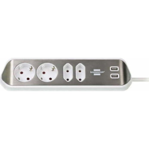 Brennenstuhl Πολύπριζο 4 Θέσεων με 2 USB-A και Καλώδιο 2m Ασημί