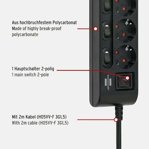 Brennenstuhl Πολύπριζο 6 Θέσεων με Διακόπτη και Καλώδιο 2m