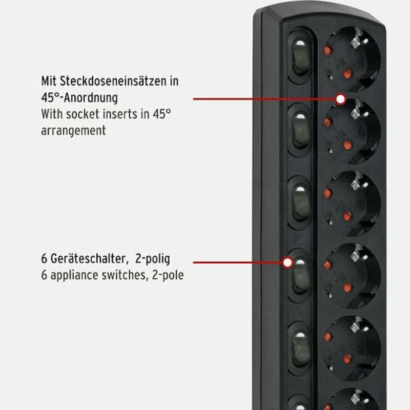Brennenstuhl Πολύπριζο 6 Θέσεων με Διακόπτη και Καλώδιο 2m (1153110116)