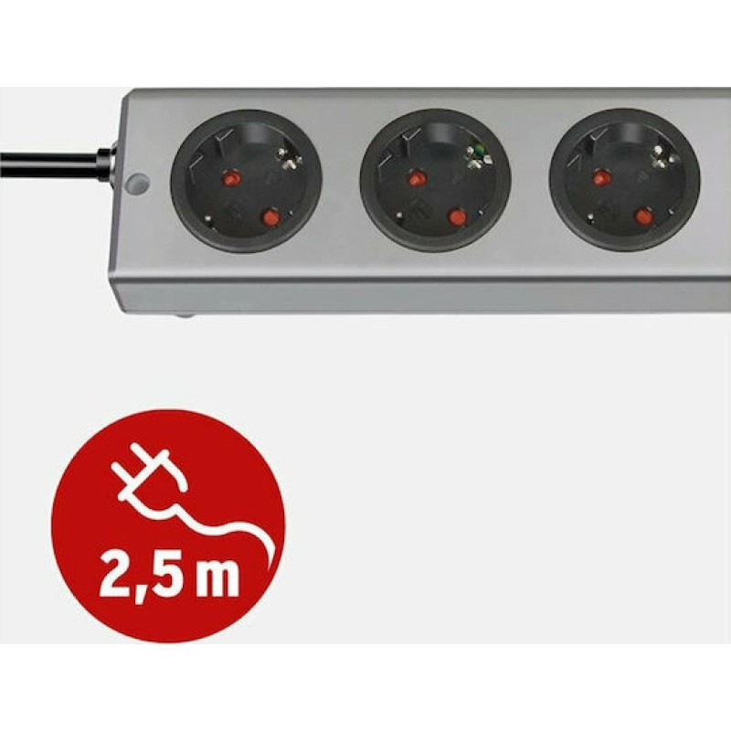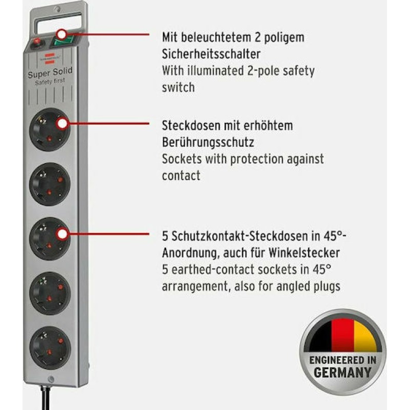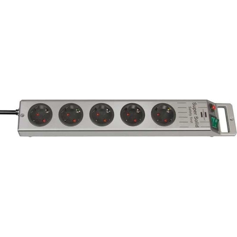 Brennenstuhl Super-Solid Line Πολύπριζο Ασφαλείας 5 Θέσεων με Διακόπτη και Καλώδιο 2.5m Ασημί (1153340115)