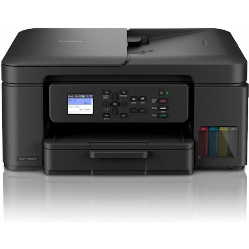 Η Brother DCP-T780DW είναι μια πολυλειτουργική συσκευή που προσφέρει εκτύπωση, αντιγραφή και σάρωση με υψηλή απόδοση και χαμηλό κόστος. Διαθέτει σύστημα συνεχούς τροφοδοσίας μελανιού, επιτρέποντας στους χρήστες να εκτυπώνουν μεγάλο αριθμό σελίδων χωρίς να ανησυχούν για συχνές αναγκαίες αλλαγές μελανιών. Η ποιότητα εκτύπωσης είναι εξαιρετική, με ανάλυση έως 1200 x 6000 dpi, προσφέροντας καθαρές και ευκρινείς εκτυπώσεις. Η συσκευή υποστηρίζει Wi-Fi και συνδεσιμότητα μέσω εφαρμογών όπως το Brother iPrint&Scan, AirPrint και Google Cloud Print, διευκολύνοντας την εκτύπωση από κινητές συσκευές και άλλες συνδεδεμένες πλατφόρμες. Ενσωματώνει επίσης αυτόματη τροφοδοσία εγγράφων (ADF) και διπλή όψη εκτύπωσης, προσφέροντας καλύτερη αποδοτικότητα και εξοικονόμηση χαρτιού.