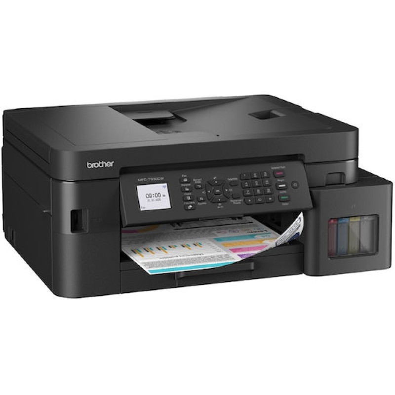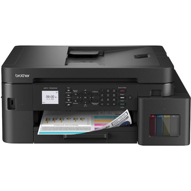 Το Brother MFC-T930DW είναι ένας αποδοτικός ασύρματος ink tank εκτυπωτής all-in-one που συνδυάζει εκτύπωση, σάρωση, αντιγραφή και φαξ, προσφέροντας εξαιρετικά χαμηλό κόστος ανά σελίδα χάρη στα μελάνια πολύ υψηλής απόδοσης. Διαθέτει εύκολο και καθαρό σύστημα αναπλήρωσης με key-lock μπουκάλια, έγχρωμη οθόνη 4,5 cm, ταχύτητα έως 17 εικόνες/λεπτό και αυτόματη εκτύπωση διπλής όψης. Με προηγμένες επιλογές συνδεσιμότητας όπως fast ethernet, 5GHz WiFi και USB, δίσκο χαρτιού 150 φύλλων, πολυχρηστικό δίσκο 80 φύλλων και ADF 20 φύλλων, αποτελεί ιδανική λύση για σπίτι ή μικρό γραφείο με υψηλές ανάγκες εκτύπωσης.