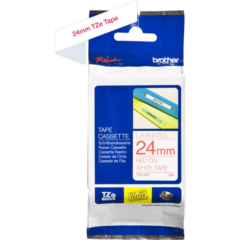 Brother Ταινία Ετικετογράφου 8m x 24mm Κόκκινο σε Λευκό Χρώμα (TZE252)