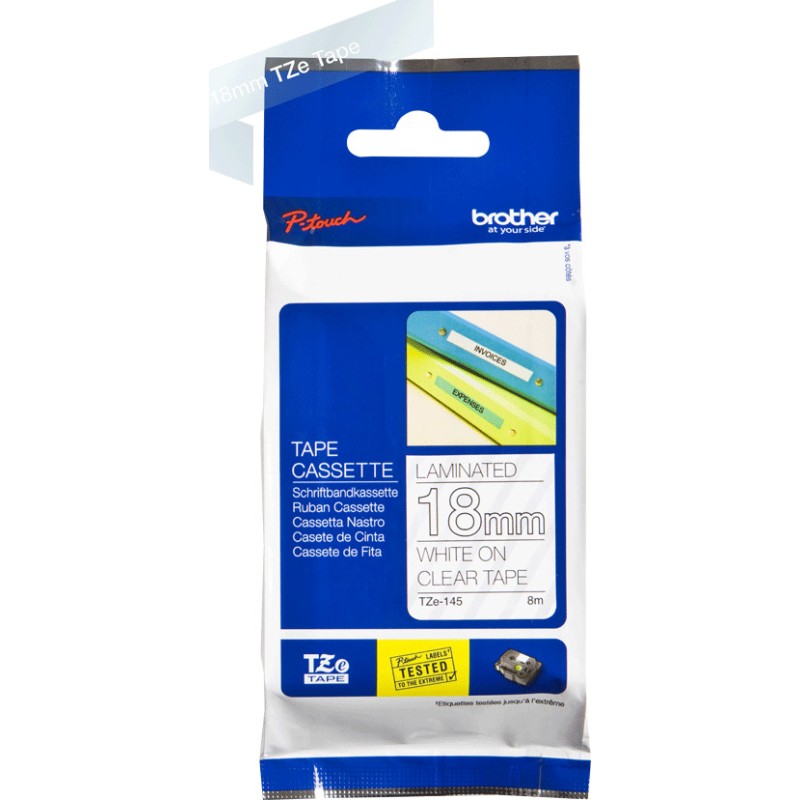 Brother TZE-145 (8m x 18mm) Λευκό σε διάφανο (TZE145)