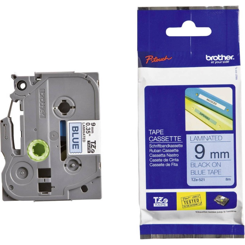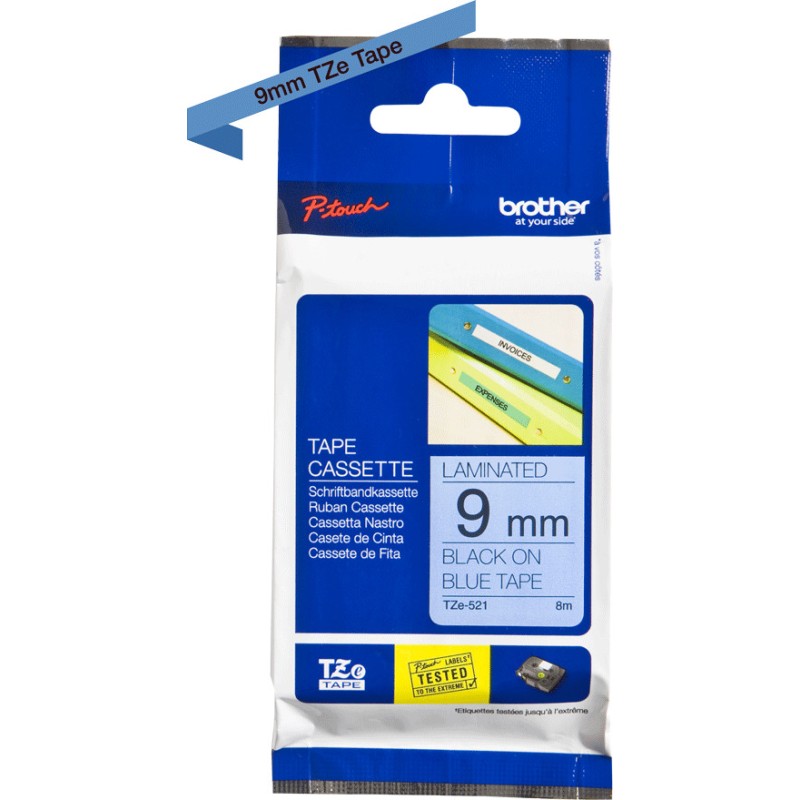 Brother TZE-521 Ταινία Ετικετογράφου (8m x 9mm) Μαύρο σε Μπλε (TZE521)