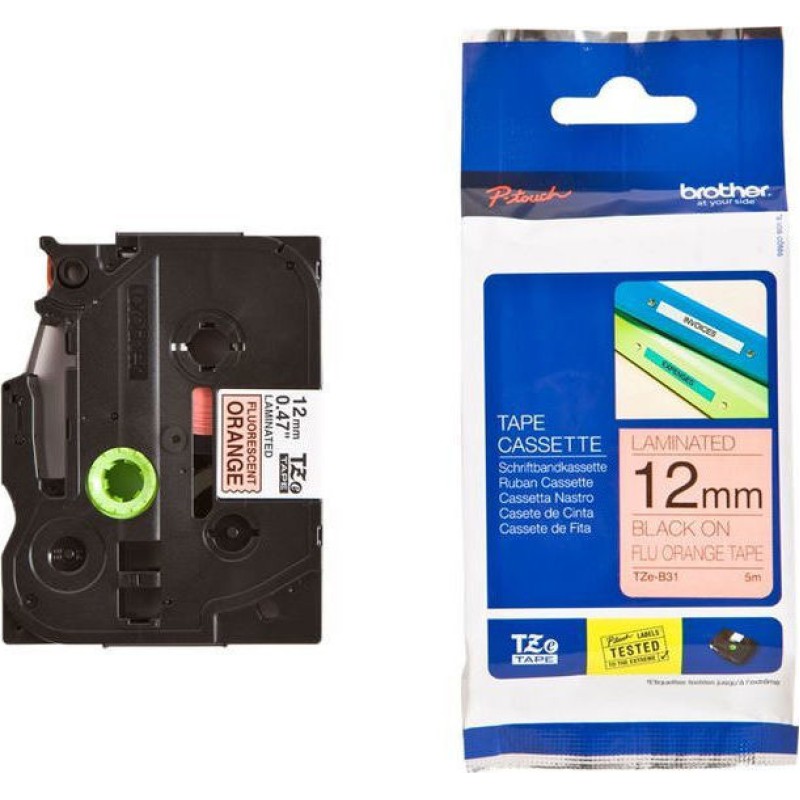 Brother TZE-B31 Ταινία Ετικετογράφου (5m x 12mm) Μαύρο σε Πορτοκαλί (TZEB31)
