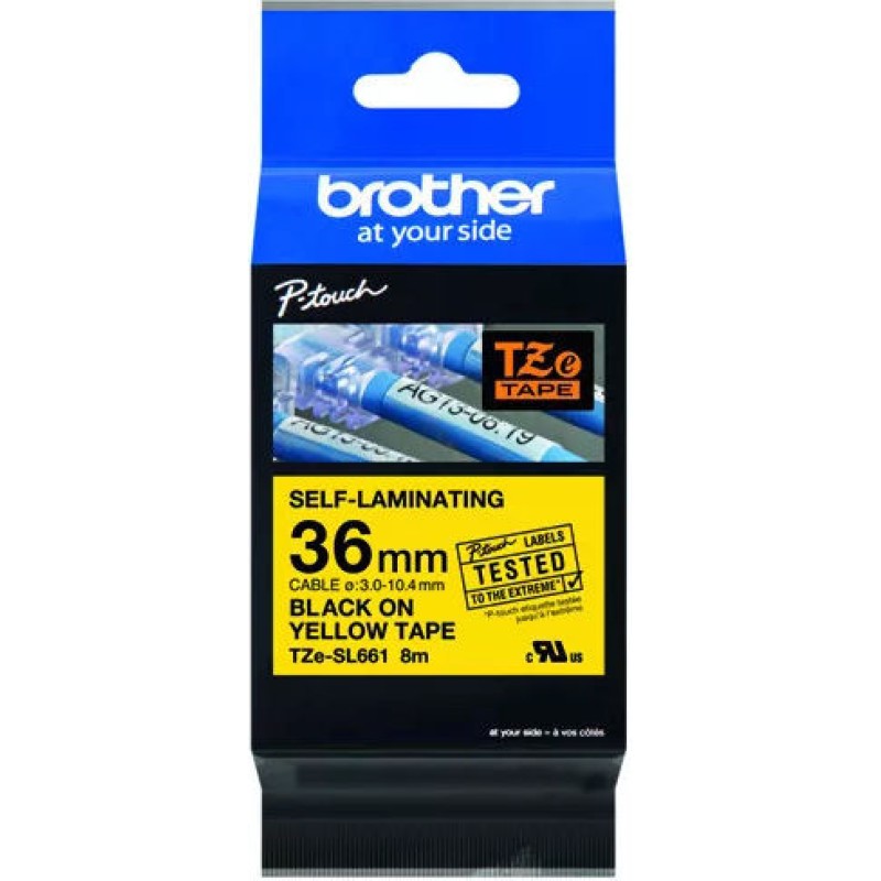 Αυθεντική ταινία εκτυπωτή ετικετών Brother TZE-SL661 με μαύρη εκτύπωση σε κίτρινο φόντο. Είναι πλαστικοποιημένη και έχει μήκος 8m και πλάτος 36mm.