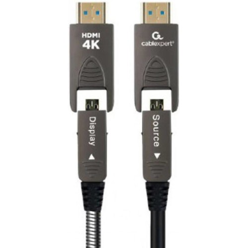 Καλώδιο Cablexpert High Speed HDMI D-A με Ethernet από τη σειρά AOC Armored. Χρησιμοποιεί τεχνολογία οπτικών ινών για τη μεταφορά ψηφιακού σήματος HDMI, μειώνοντας τον κίνδυνο παρεμβολών EMI/RF.