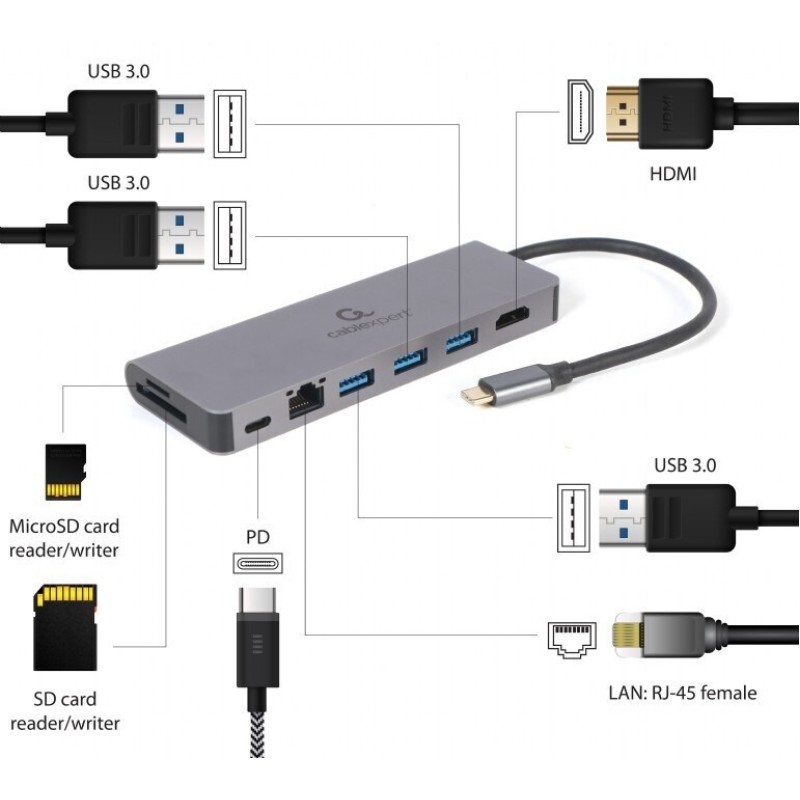 Station της εταιρίας Cablexpert που συνδέεται σε Laptop με θύρα USB-C.