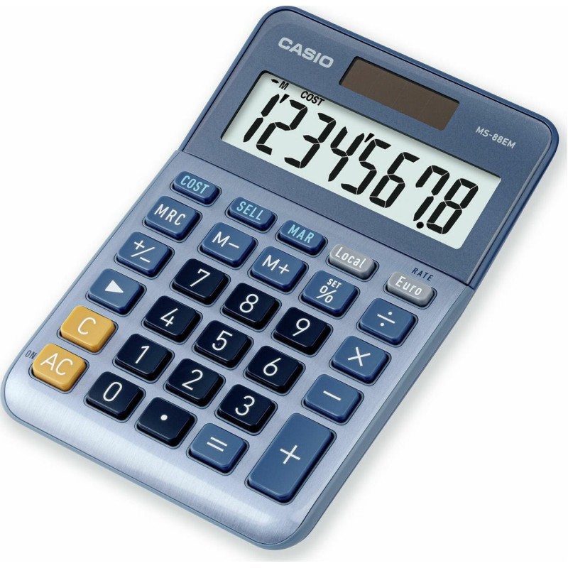 Casio Αριθμομηχανή MS-88EM 8 Ψηφίων σε Μπλε Χρώμα (MS-88ECO)