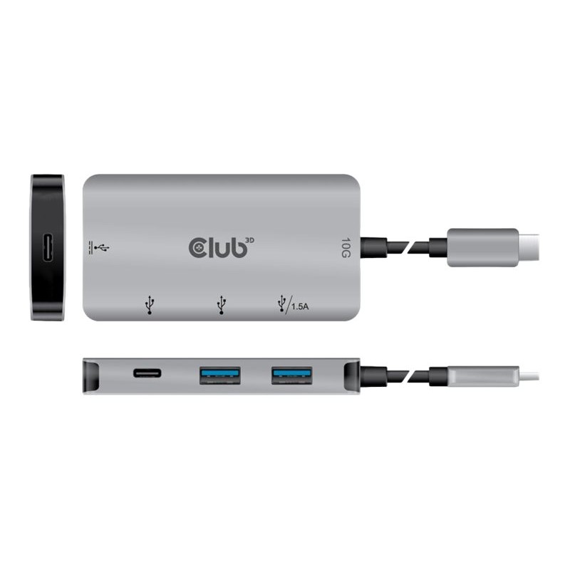 Club3D USB 3.2 Hub 4 Θυρών USB-C & Θύρα Φόρτισης Silver (CSV-1543)