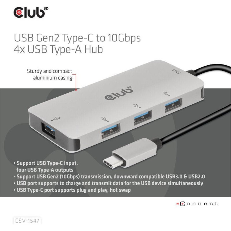 Club3D USB Gen2 Type-C to 10Gbps 4x USB Type-A Hub Ασημί (CSV-1547)