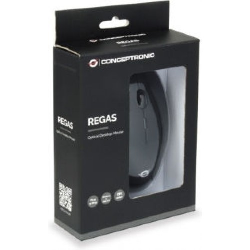Conceptronic Regas A2 Ενσύρματο Ποντίκι Μαύρο (REGAS01B)