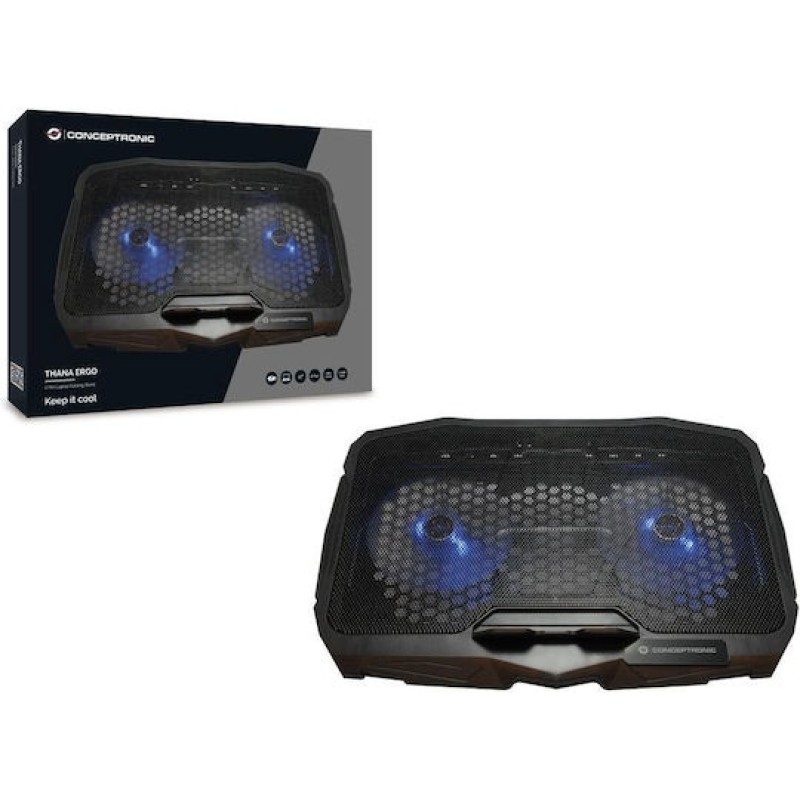 Conceptronic THANA07B Ergo Cooling Pad για Laptop έως 17" με 2 Ανεμιστήρες (THANA07B)
