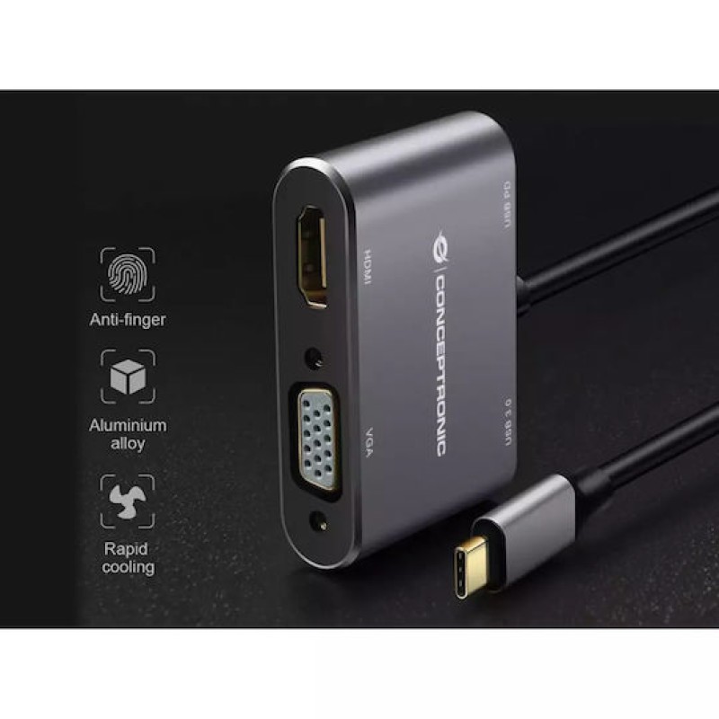 Conceptronic USB-C Docking Station με HDMI 4K PD Γκρι (DONN16G) (DONN16G)