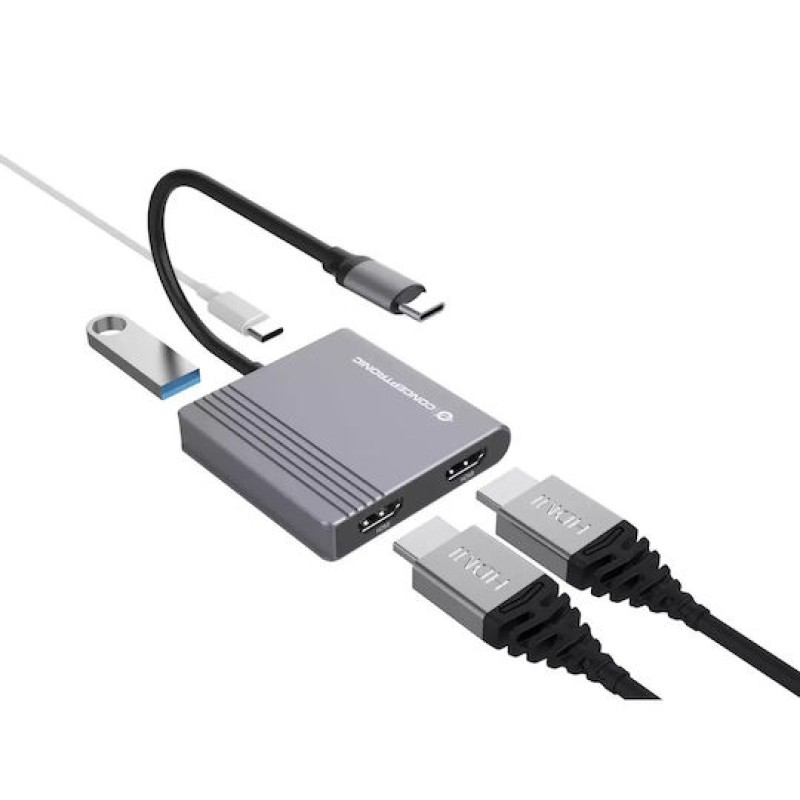 Conceptronic USB-C Docking Station με HDMI 4K PD και σύνδεση 2 Οθονών Γκρι (DONN13G)