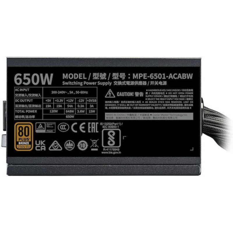 CoolerMaster MWE Bronze 650 V3 230V Power Supply Μαύρο (MPE-6501-ACABW-3BEU)