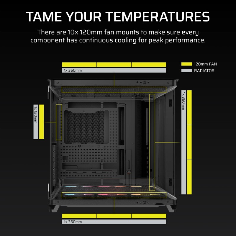 | Υποστηριζόμενοι ανεμιστήρες μπροστά (μέγιστοι) | 3 x 120 mm |