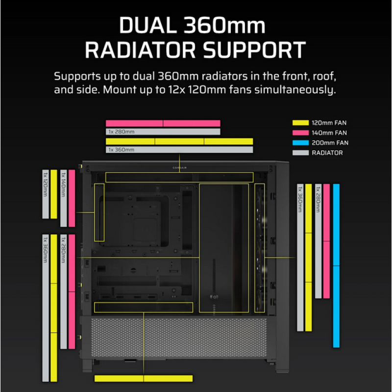 Άνω (360/280/240mm) | Μπροστά (360/280/240mm) | Πίσω (140/120mm) | Πλάι (360/280/240mm)