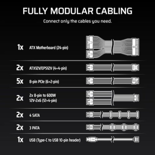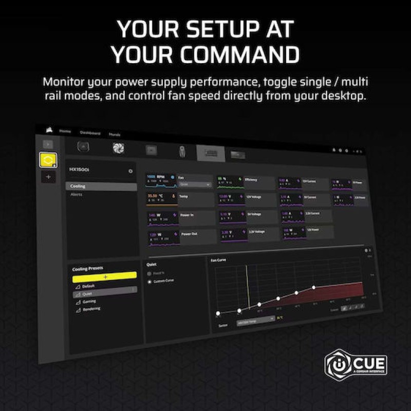 Το Corsair HX1500i είναι ένα full modular και αποδοτικό 80 Plus Platinum PSU (1500 W), με ATX 3.1 και PCIe 5.1 συμβατότητα, ανεμιστήρα Fluid Dynamic Bearing με Zero RPM mode για σιωπηλή λειτουργία, premium 100% ιαπωνικούς πυκνωτές, υποστήριξη μέσω iCUE για monitoring