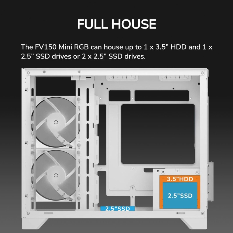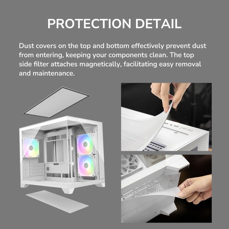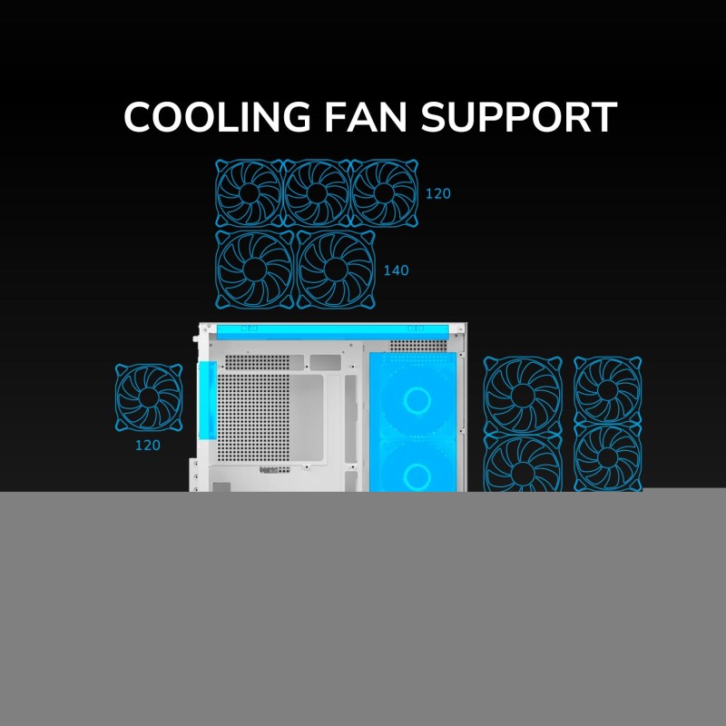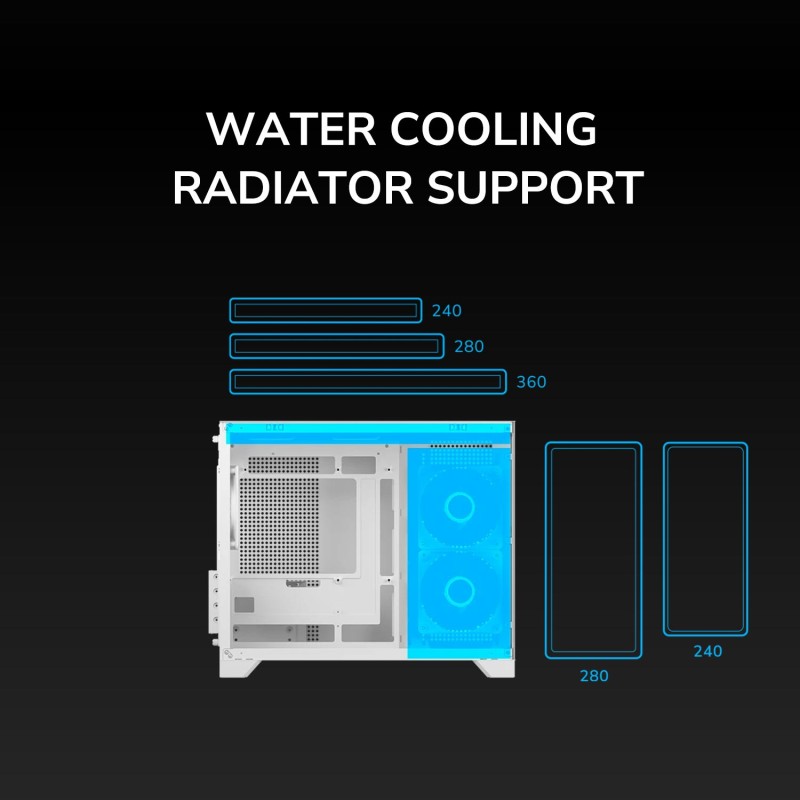 Τα προϊόντα που δεν αναγράφουν διαθέσιμο σημαίνει ότι δεν υπάρχουν άμεσα διαθέσιμα στο κατάστημα και θα παραληφθούν το αργότερο εντός των εργάσιμων ημερών που αναγράφεται στη διαθεσιμότητα. Σε κάθε περίπτωση η ημερομηνία μπορεί να μεταβληθεί και θα υπάρχει σχετική ενημέρωσή σας.Το λευκό Mini Tower κουτί υπολογιστή είναι σχεδιασμένο για gaming και υποστηρίζει μητρικές micro ATX και Mini-ITX. Διαθέτει παράθυρο από σκληρυμένο γυαλί και πολύχρωμο φωτισμό στα ανεμιστηράκια του, προσφέροντας εντυπωσιακή εμφάνιση. Υποστηρίζει έως 4 θέσεις επέκτασης, έχει φίλτρο κατά της σκόνης και κουμπιά reset και on/off. Υποστηρίζει μεγάλους ψύκτες CPU έως 17 cm και κάρτες γραφικών μήκους έως 40 cm, ενώ είναι κατάλληλο για υδρόψυξη με υποστήριξη ραδιέρων σε διάφορα μεγέθη. Παρέχει αρκετές θύρες USB και υποδοχή combo ακουστικών/μικροφώνου.