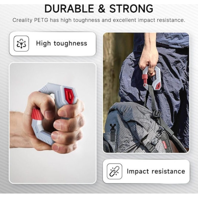 Το Creality CR-PETG Purple είναι ένα σκληρό και γυαλιστερό νήμα 3D εκτύπωσης με διάμετρο 1,75 mm και αντοχή εφελκυσμού 49 MPa. Εκτυπώνεται σε θερμοκρασίες 220–250 °C και διαθέτει καλή πρόσφυση, ελάχιστο stringing και ανθεκτικότητα. Ιδανικό για καθημερινή χρήση, απαιτεί σωστή ρύθμιση θερμοκρασίας και ξήρανση για καλύτερα αποτελέσματα. Είναι κατάλληλο για όσους θέλουν στιλάτες και ανθεκτικές εκτυπώσεις με εύκολο χειρισμό.