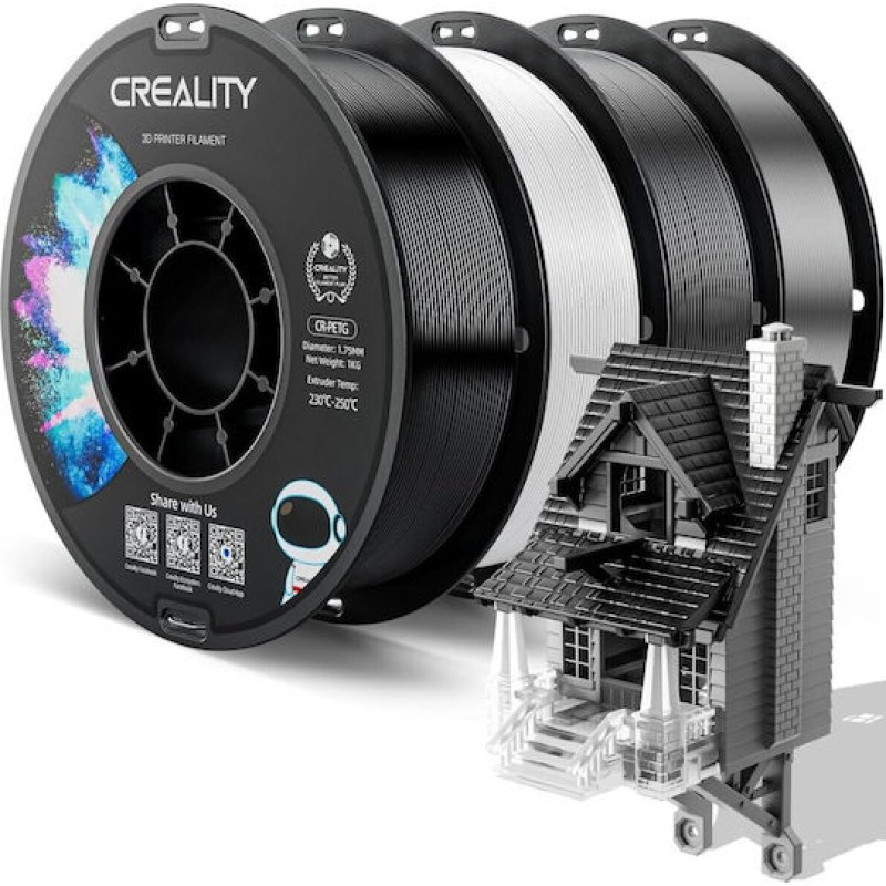 Creality CR-PETG Value Pack 4kg - Black & White & Gray & Transparent 3D Printer Filament no reel (3301030139)