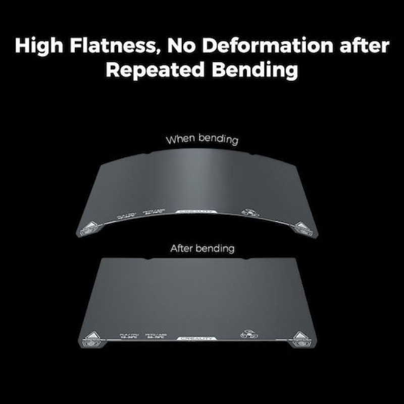 Τα προϊόντα που δεν αναγράφουν διαθέσιμο σημαίνει ότι δεν υπάρχουν άμεσα διαθέσιμα στο κατάστημα και θα παραληφθούν το αργότερο εντός των εργάσιμων ημερών που αναγράφεται στη διαθεσιμότητα. Σε κάθε περίπτωση η ημερομηνία μπορεί να μεταβληθεί και θα υπάρχει σχετική ενημέρωσή σας.Η Creality Low Temperature Cold Printing Build Plate – K2 Plus 370×370 mm είναι μια αναβαθμισμένη πλάκα εκτύπωσης σχεδιασμένη για τον εκτυπωτή Creality K2 Plus, που προσφέρει εξαιρετική πρόσφυση ακόμη και σε χαμηλότερες θερμοκρασίες. Διαθέτει επίστρωση σκόνης PEI υψηλής ποιότητας με υφή στην επιφάνεια, η οποία δεν γρατσουνίζεται εύκολα και είναι ανθεκτική στη φθορά. Η βάση της είναι κατασκευασμένη από ελατηριωτό χάλυβα υψηλής επιπεδότητας και ελαστικότητας, εξασφαλίζοντας σταθερότητα στην εκτύπωση και εύκολη αφαίρεση των μοντέλων μόλις κρυώσουν. Με διαστάσεις 370 × 370 mm, είναι κατάλληλη για μεγάλες εκτυπώσεις και συμβατή με εκτυπωτικά υλικά όπως PLA, ABS, ASA, PETG, TPU, PC, PA κ.ά. Το χαρακτηριστικό «cold printing» επιτρέπει εκτύπωση με μη ή ελάχιστα θερμαινόμενη πλάκα, κάτι που μειώνει την κατανάλωση ενέργειας και απλοποιεί τη διαδικασία.