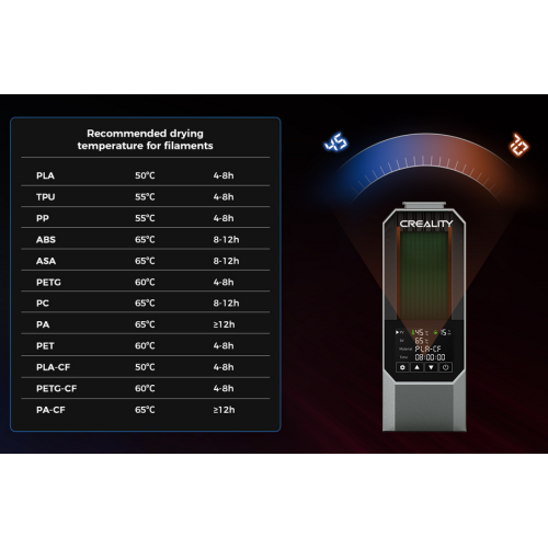 Το Creality Space Pi Filament Dryer είναι μια συσκευή που βοηθά στο στέγνωμα του 3D εκτυπωτικού νήματος κατά τη διάρκεια της εκτύπωσης. Αυτό βελτιώνει την ποιότητα και τη συνοχή των 3D μοντέλων. Ο χώρος του μοιάζει με ένα μικρό ψυγείο, αλλά η λειτουργία του είναι πολύ πιο χρήσιμη στον κόσμο της 3D εκτύπωσης. Η συσκευή χρησιμοποιεί την τεχνολογία θέρμανσης PTC 360° για να στεγνώσει το νήμα και να βελτιώσει την ποιότητα της εκτύπωσης. Μπορεί να στεγνώσει έως και 12 νήματα ταυτόχρονα. Αντιμετωπίζει τα προβλήματα που προκύπτουν από το εκτυπωτικό νήμα που είναι υγρό, όπως το stringing, η φραγή, η κακή πρόσκληση και η μετατόπιση στρώσεων, βελτιώνοντας την ποιότητα του μοντέλου σας και ελαχιστοποιώντας την επίδραση εξωτερικών περιβαλλοντικών παραγόντων στην εκτύπωση των 3D νημάτων