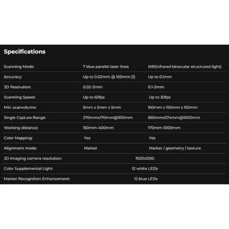 Ο CR-Scan Raptor διακρίνεται για την ακρίβεια σάρωσης έως 0.02 mm, χάρη στις επτά γραμμές λέιζερ του, οι οποίες επιτρέπουν την εξαιρετικά λεπτομερή αναπαραγωγή αντικειμένων. Η σάρωση με μπλε λέιζερ μπορεί να φτάσει ταχύτητες έως 60 καρέ ανά δευτερόλεπτο για γρήγορη και αποδοτική λειτουργία, ενώ στη λειτουργία NIR, η ταχύτητα φτάνει τα 20 καρέ ανά δευτερόλεπτο.