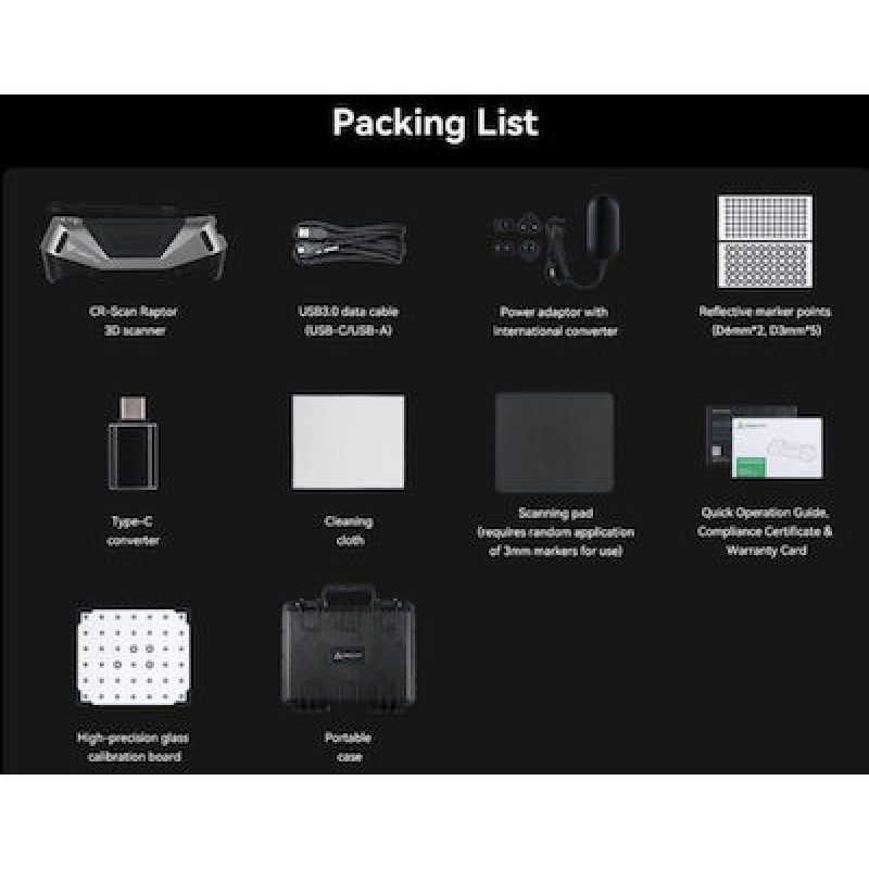 Τα προϊόντα που δεν αναγράφουν διαθέσιμο σημαίνει ότι δεν υπάρχουν άμεσα διαθέσιμα στο κατάστημα και θα παραληφθούν το αργότερο εντός των εργάσιμων ημερών που αναγράφεται στη διαθεσιμότητα. Σε κάθε περίπτωση η ημερομηνία μπορεί να μεταβληθεί και θα υπάρχει σχετική ενημέρωσή σας.Ο Creality CR-Scan Raptor είναι ένας προηγμένος σαρωτής 3D που συνδυάζει τεχνολογία μπλε λέιζερ και υπέρυθρης (NIR) τεχνολογίας για να προσφέρει ακρίβεια επιπέδου μετρολογίας. Χάρη σε αυτή την προηγμένη τεχνολογία, ο σαρωτής επιτρέπει τη δημιουργία εξαιρετικά ακριβών 3D μοντέλων από ποικιλία αντικειμένων, από μικρά αντικείμενα έως μεγάλα στοιχεία με μέγιστες διαστάσεις 2000 x 2000 x 2000 mm.