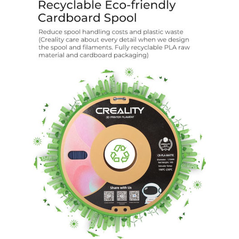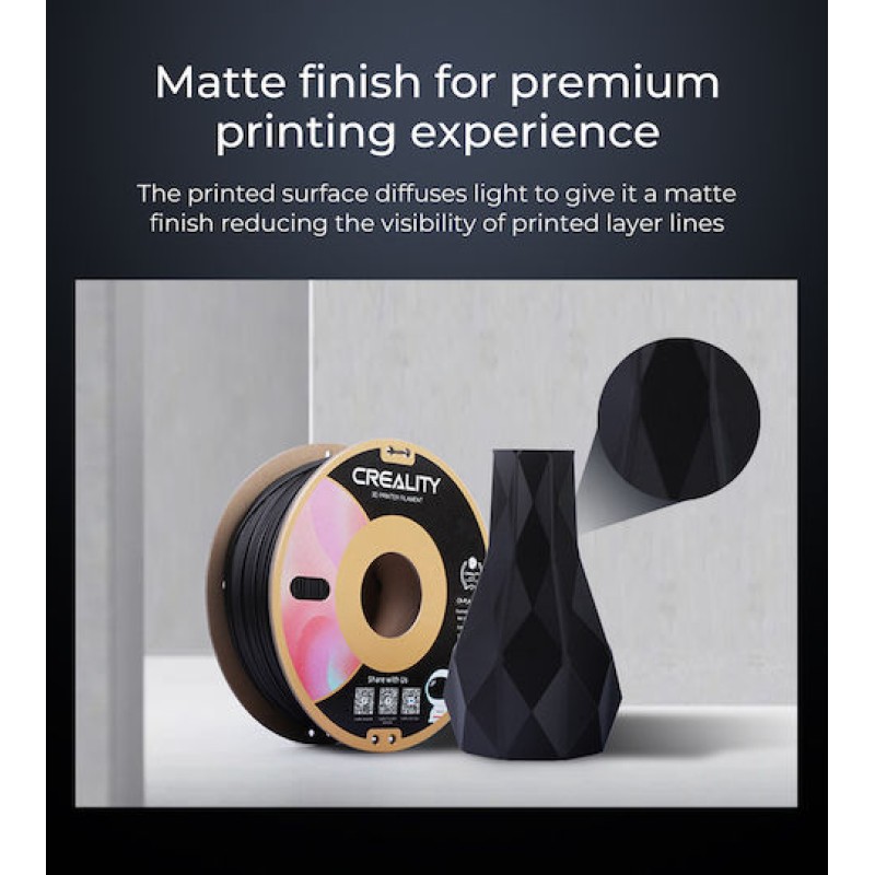 Ειδική τεχνολογία κατά της απόφραξης, Clogging-free. Η θερμοκρασία μαλάκυνσης του νήματος CR-PLA Matte φτάνει τους 140°C, έτσι ώστε να μην μαλακώνει στο «ψυχρό άκρο» του ακροφυσίου, γεγονός που λύνει ουσιαστικά το πρόβλημα της απόφραξης.