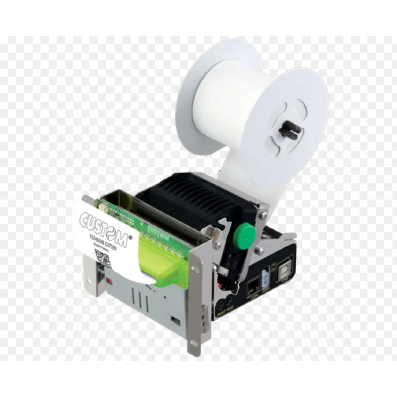Ο εκτυπωτής TG2460HIII CUTTER της Custom S.p.A. είναι θερμικός με ανάλυση 203 DPI και ταχύτητα εκτύπωσης 140 mm/δευτ., υποστηρίζοντας 32, 42 ή 56 στήλες χαρακτήρων και πολλαπλά σετ χαρακτήρων. Χρησιμοποιεί ρολό χαρτιού πλάτους 60 mm με βάρος 55–70 g/m² και πάχος 60–80 μm. Διαθέτει αισθητήρες για θερμοκρασία κεφαλής, μπλοκάρισμα και παρουσία χαρτιού, και συνδέεται μέσω RS232 και USB με υποστήριξη Custom/POS και TGH. Έχει 2 kB buffer, 1 MB flash μνήμη και αποθηκεύει δύο λογότυπα. Υποστηρίζονται Windows, Linux, Android και Virtual COM, ενώ συνοδεύεται από λογισμικά εργαλεία παρακολούθησης και ρύθμισης. Τροφοδοτείται στα 24V με κατανάλωση 0.62A, έχει MTBF 420.000 ώρες και διάρκεια ζωής κεφαλής 50 km.