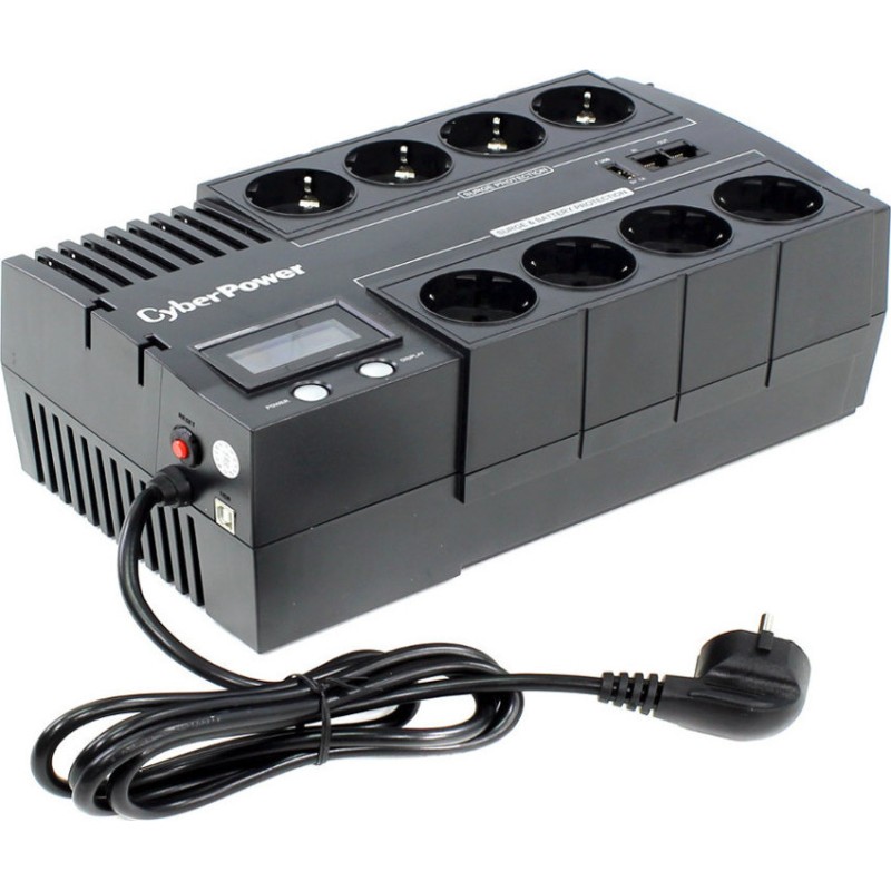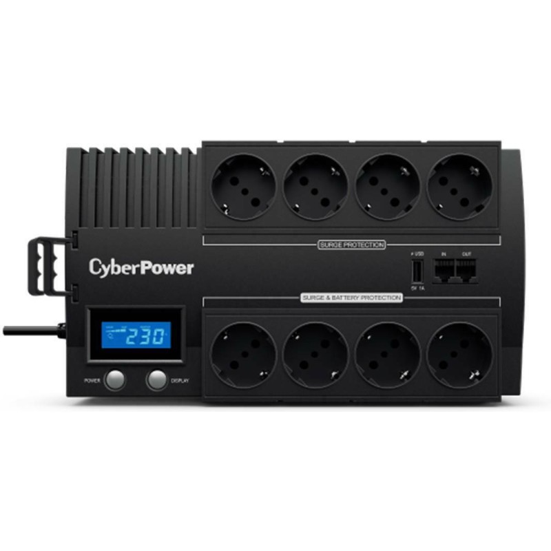 Το BR1200ELCD UPS Line-Interactive 1200VA 720W με 8 Schuko Πρίζες της CyberPower είναι ένα Compact UPS. Διαθέτει 8 πρίζες τύπου Schuko καθώς και υποδοχή και έξοδο για καλώδιο ethernet και για καλώδιο τηλεφώνου, προστατεύοντας τις συσκευές που συνδέονται με αυτό π.χ. router ή τηλέφωνο (εφόσον είναι συνδεδεμένη και η τροφοδοσία τους σε UPS ή πολύπριζο ασφαλείας). Η λειτουργία του είναι (VI) Line-Interactive που προσαρμόζει την τάση εξόδου συνεχώς μέσω αυτόματου ρυθμιστή τάσης προστατεύοντας από αυξομειώσεις της τάσης και διακοπές του ρεύματος. Η μπαταρία του μπορεί να κρατήσει 9 λεπτά με μισό φορτίο ή 2 λεπτά με πλήρες φορτίο (όταν οι συσκευές που είναι συνδεδεμένες τραβάνε το μισό ή το μέγιστο ρεύμα που μπορεί να δώσει το UPS