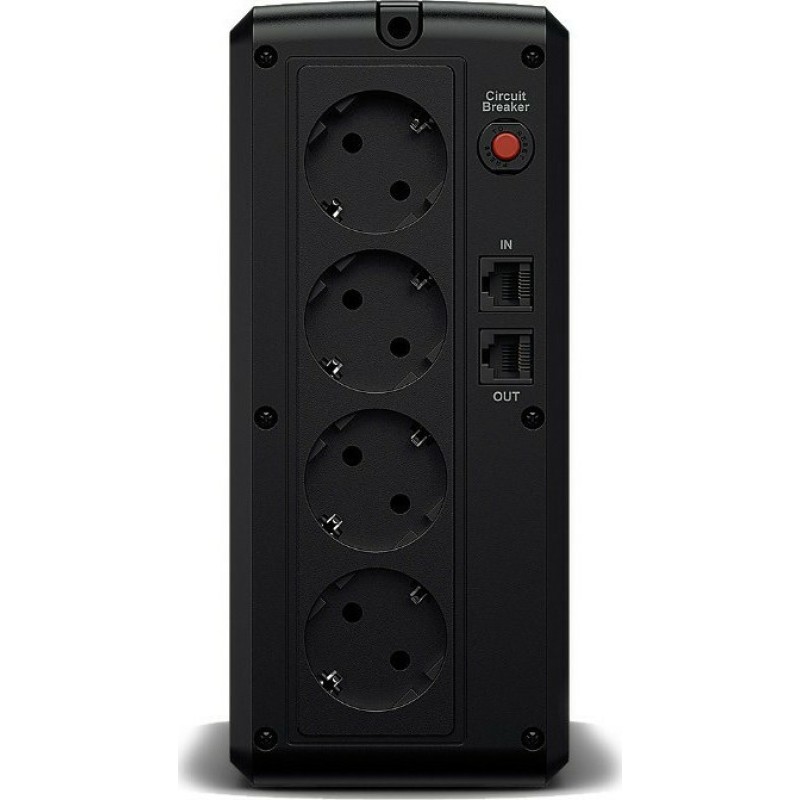 Το UT1050EG UPS Line-Interactive 1050VA 630W με 4 Schuko Πρίζες της CyberPower είναι ένα Tower UPS. Διαθέτει 4 πρίζες τύπου Schuko καθώς και υποδοχή και έξοδο για καλώδιο ethernet και για καλώδιο τηλεφώνου, προστατεύοντας τις συσκευές που συνδέονται με αυτό π.χ. router ή τηλέφωνο (εφόσον είναι συνδεδεμένη και η τροφοδοσία τους σε UPS ή πολύπριζο ασφαλείας). Η λειτουργία του είναι (VI) Line-Interactive που προσαρμόζει την τάση εξόδου συνεχώς μέσω αυτόματου ρυθμιστή τάσης προστατεύοντας από αυξομειώσεις της τάσης και διακοπές του ρεύματος.